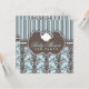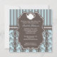 Diese Einladung die Bühne für eine schicke Babydusche, die sie sicher Liebe. Eine süße Silhouette eines zarten Teekapsels mit elegantem mochafarbenen und blass blauen Babydamast und Stripmuster schafft ein reizendes Design mit französischem Ambiente, das für ein elegantes Tee-Party-Baby-Fest geeignet ist.