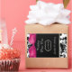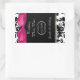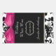 Hübsche Hochzeitsweinflaschen bevorzugen Aufkleber, die in schwarz-weißem Damast-Muster, oben und unten, und in der Mitte in massivem Schwarz gefertigt werden. Ein schicke, rosa Satin, das wie ein Bogen aussieht, betont die Oberseite des Aufklebers. Personalisieren Sie den weißen Text für Ihren Hochzeitsempfang.