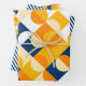Schöne zeitgenössische dunkelblaue, sonnige gelbe und sommerorangefarbene geometrische Kreise und Halbkreise Muster auf einem knackigen weißen Hintergrund. Elegantes, stilvolles und eklektisches minimalistisches Design für den künstlerischen angesagten Trendsetter, Vintage Retro-Kunststil oder abstrakten geometrischen Motivliebhaber. Erhältlich auf einer Vielzahl von modernen Handwerken und Büroprodukten. Zum Beispiel Umhüllung und Gewebepapier, Geschenketiketten, Taschen und Geschenkpackungen, Aufkleber, Bänder, Schreibwaren und Umschläge.