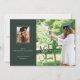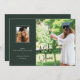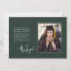 Diese Ankündigung des Abschlusses zeichnet sich durch einen stilvollen dunkelgrünen Hintergrund mit einem großen Foto und einem kleineren Foto aus. Die Details beinhalten den Abschluss, Hauptfach, Schulname und schließ Jahr mit dem Namen des Absolventen in einem handgeschriebenen "Signatur"-Schriftart hervorgehoben. Auf der Rückseite befinden sich ein zusätzliches Foto und ein Platz für eine längere Botschaft, ideal, um eine Dankeschön-Notiz oder die Hervorhebung der Errungenschaften und der Zukunftspläne des Absolventen einzuschließen.