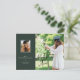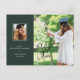 Diese Ankündigung des Abschlusses zeichnet sich durch einen stilvollen dunkelgrünen Hintergrund mit einem großen Foto und einem kleineren Foto aus. Die Details beinhalten den Abschluss, Hauptfach, Schulname und schließ Jahr mit dem Namen des Absolventen in einem handgeschriebenen "Signatur"-Schriftart hervorgehoben. Diese Ankündigung des Postcard Abschlusses ist für einfaches Mailen eingerichtet.