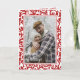 Moderne klassische Weihnachtsferien dunkelrot gefärbte, blumengestaute Muster auf einem knusprigen weißen Hintergrund. Mit der Option, um mit einem Foto und (begrenzten) Text Ihrer Wahl zu personalisieren oder anzupassen. Mit Raum zum Anpassen oder Personalisieren des Textes auf der Vorderseite, Familienname (oder einzelne Namen) und eine anpassbare Saison Grußbotschaft auf der Innenseite der Karte. Dieses Motiv ist erhältlich auf Rücksendeadressen-Aufklebern, Verpackungen und Papiertaschentüchern, Geschenktafeln, Taschen und Gefälligkeitsboxen, Umschlag Aufkleber-Aufklebern, Bändern, Notebooks, Binden, Schreibwaren und Umschlägen.