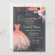 Elegante Rose Gold Glitzer Kleid, Blume und Konfetti auf einem schwarzen Hintergrund.