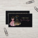 Eine elegante Visitenkarte für die Kleidung mit rosa und schwarz-goldfarbenem Cocktailkleid, schwarz gefühlter Kardinenuntergrund, goldfarbener Glitzer mit Akzenten. Personalisieren Sie den Text nach Ihren geschäftlichen Anforderungen. Eine schöne Karte für Ihr Schneidergeschäft.