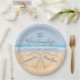 Chic Dusty Blue Beach Hochzeit 2 Herzen in Sand Pappteller