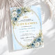 Ideal for classic, modern, garden, or elegant Quinceañera themes, this invitation combines delicate blue hues with warm gold details to achieve a look that feels both sophisticated and youthful. The greenery and eucalyptus bring freshness and balance, while the gold accents add just the right amount of sparkle for a meaningful 15th birthday celebration. Whether you are planning a formal Quinceañera, a traditional fiesta, or an intimate family gathering, this invitation sets a beautiful and memorable tone.