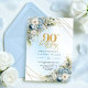 Chic Dusty Blue Gold Script 90th Birthday Invite Einladung
