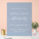 Chic dusty blauen Hochzeitsempfang Begrüßungsschild mit "Welcome To Our Happily Ever After Party" in schlichter weißer Schrift und einem eleganten, weißen Drehbuch mit Swashes, Ihren Vornamen verbunden mit einem Herz und Ihrem Empfang Datum. Ideal für Empfänge nach einer Veranstaltung oder einer kleinen privaten Hochzeit.