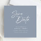 Chic Dusty Blue & White Calligraphy Save the Date Einladung