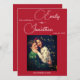 Chic Editorial Deep Red One Photo Wedding Einladung