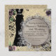 Ein elegantes, schwarzes Kleid auf goldfarbenem Hintergrund mit violetten Blumen und dekorativen Wirbel kombiniert mit einem schlanken Kreis mit silberfarbenem blüh, wo Sie Ihre Veranstaltung individuell gestalten können. Stilvolle mädchenhafte Eleganz.