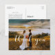 Mit dieser individuell gestaltbaren Fotokarte bedanken Sie sich für Ihre Anwesenheit und die schönen Geschenke. Fügen Sie einfach Ihr Lieblings-Hochzeitsbild hinzu, ändern Sie die Farben und schreiben Sie Ihre eigene Dankeschön-Nachricht.