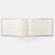 Es ist ein einfaches und elegantes Hochzeitsgast-Gästebuch mit hübschen lila Rose Blume und Typografie. Sie können alle Details an Bord wie Braut- und Bräutigam-Namen und Datum anpassen, indem Sie auf die Option Personalisieren klicken und für weitere Änderungen auf Bearbeiten klicken. Die Rückseite hat einen lavenderfarbenen, soliden Hintergrund. Perfektes Design für romantische Hochzeiten.