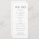 Dieses klassische und dennoch moderne Hochzeitsprogramm besticht durch einen schicken, weißen Hintergrund mit eleganter schwarzer Typografie auf der Vorder- und Rückseite. "WE DO" kann zu den Initialen des Paares (z.B. A+L) editiert werden. Es ist das perfekte Design für jede elegante und dennoch moderne Hochzeit! Informationen zur Koordination von Elementen finden Sie in der Auflistung.