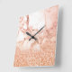 Chic Elegante Rose Gold Ombre Glitzer Marmor Quadratische Wanduhr