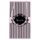 Diese herrlichen, weiblichen Ausrüstungsbeschreibungsschicken schwarzen und rosa Streifen und ein rosa Band zeichneten mit Schwarzem. Die Mitte des Entwurfs besteht einen verzierten, schönen dekorativen schwarzen Rahmen, den Sie mit Ihrem Namen oder Initialen im Elfenbein personifizieren können. Diese elegante französische Art reflektiert einen sehr girly, bezaubernden Paris-Blick.