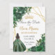 Personalisieren Sie diesen hübsch smaragdgrünen Blumenstrauß Quinceañera / Sweet 16 Geburtstag Save the Date einfach und schnell. Klicken Sie einfach auf die Schaltfläche "Weitere Einstellungen", um die Texte zu bearbeiten, Schriftart und Schriftart zu ändern. Mit einem Mädchen gekleidet in einem schönen smaragdgrünen Kleid, schick smaragdgrünen Blume und Schmetterlinge. Matching-Elemente im Speicher verfügbar. c) Somerset Fine Paperie