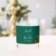 Ein gewagtes und elegantes Hochzeitskonzept mit einem smaragdgrünen Hintergrund und goldenen Hochzeitsringen in der unteren Ecke. Ein elegantes und zeitloses Design, perfekt für klassische und formelle Zeremonien.
