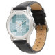 Eine schicke Armbanduhr mit einem ethnisch geprägten Imitat-Patchwork-Muster in Aquamarin und Weiß. Als Teil der Posh & Painterly 'Boho Bazaar' Kollektion kann dieses Muster leicht angepasst werden, indem die Richtung oder der Maßstab der Musterfliese für ein völlig anderes Aussehen geändert werden.