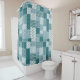 Ein schicker Duschvorhang mit ethnisch geprägten Imitaten, die Aquamarin und weiß gestapelt sind. Als Teil der Posh & Painterly 'Boho Bazaar' Kollektion kann dieses Muster leicht angepasst werden, indem die Richtung oder der Maßstab der Musterfliese für ein völlig anderes Aussehen geändert werden.