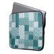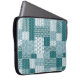 Ein schicker Laptop-Schläfchen mit einem ethnisch geprägten Imitat-Patchwork-Muster in Aquamarin und weiß. Als Teil der Posh & Painterly 'Boho Bazaar' Kollektion kann dieses Muster leicht angepasst werden, indem die Richtung oder der Maßstab der Musterfliese für ein völlig anderes Aussehen geändert werden.