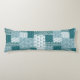 Ein schicker Body Kissen mit einem ethnischen Imitat Patchwork Muster in Aquamarin und weiß. Als Teil der Posh & Painterly 'Boho Bazaar' Kollektion kann dieses Muster leicht angepasst werden, indem die Richtung oder der Maßstab der Musterfliese für ein völlig anderes Aussehen geändert werden.