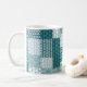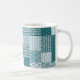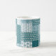 Eine schicke Coffee Tasse mit einem ethnisch geprägten Imitat-Patchwork-Muster in Aquamarin und Weiß. Als Teil der Posh & Painterly 'Boho Bazaar' Kollektion kann dieses Muster leicht angepasst werden, indem die Richtung oder der Maßstab der Musterfliese für ein völlig anderes Aussehen geändert werden.