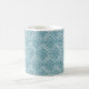 Eine schicke Keramik Coffee Tasse , mit einem ethnischen, traditionellen Ogee-Muster Aquamarin auf einem weißen Hintergrund, das Sie ändern können, wenn Sie möchten. Als Teil der Posh & Painterly 'Boho Bazaar' Kollektion kann dieses Muster leicht angepasst werden, indem die Richtung oder der Maßstab der Musterfliese für ein völlig anderes Aussehen geändert werden.