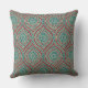 Ein Chic Kissen oder ein Kissen, mit einem ethnisch-ähnlichen, traditionellen Ogee Muster in aquamarinem, in kastanienbraunem und Beige. Der Teil der vornehmen u. Painterly "Boho Basar" Sammlung, dieses Muster kann leicht besonders angefertigt werden, indem man die Richtung oder die Skala der Musterfliese für einen vollständig anderen Blick ändert.