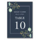 Chic Eucalyptus Green Navy Blue Botanical Wedding Tischnummer