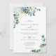 Create the perfect romantic wedding suite with this elegant invitation card featuring a sophisticated bouquet of white night queen flowers (epiphyllum hookeri), together with light and airy watercolor eucalyptus leaves and complemented with sparkling golden leaves (printed) over a classic white background