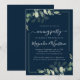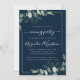 Chic Eucalyptus Navy Blue Wedding Reception Einladung