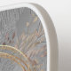 Chic silberne Federn in glänzender, silberner Kulisse kombiniert mit einem goldfarbenen, eleganten Blumenkranz, wo Sie es für Ihre Veranstaltung anpassen können, um eine romantische Hochzeit oder Verlobung zu schaffen, die Teil der stilvollen trendigen Geschenkkollektion für Hochzeiten ist.