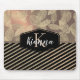 Chic Feathers with Gold Stripes Monogram Mousepad