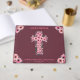 Schönes rosa Blume Kreuz für Ihre Erste Heilige Kommunion. Die Einrichtung besteht aus schönen und hübschen, rosafarbenen Blume und grünem Blattwerk. Personalisierte Vorlage für ein einzigartiges und ganz besonderes Gästebuch.