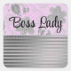 Auf diesem stilvollen Aufkleber ist ein silberfarbenes Blumenmuster auf einem rosa Hintergrund, in dem Sie es mit einem Namen, Logo oder Satz personalisieren oder behalten können, wie es bei den Worten "Boss Lady" der von einer silbernen Halskette und darunter glänzende Silberstreifen für zusätzlichen Chic umrahmt ist.