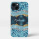 Chic floral glitterte Aquamarin Türkis Goldmonogra iPhone Hülle