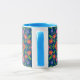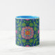 Eine hübsche Coffee-Tasse, mit einer blauen Lippe und einem blauen Griff und einem farbenfrohen Floral Rangoli-Muster auf einem Deep Blue Background, den Sie ändern können, wenn Sie möchten. Als Teil der Posh & Painterly 'Rangoli' Kollektion passt dieses Muster in jede der Tasse.