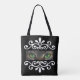 Chic Blumenvektor Katze grüne Augen auf schwarzen Tote Beutel. Katzenaugen können mit Ihrem bevorzugten horizontalen Bild angepasst werden.