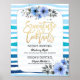 Signature Cocktail Drink Menü Hochzeitsdekor Poster-Vorlagen - elegante Gold Script Wasserfarbenflora mit Blue Brush Wave Streifen. Ein perfektes Design für Ihren großen Tag! Alle Textstile, Farben, Größen können an Ihre Bedürfnisse angepasst werden.