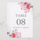 Hübsche und schick farbenfrohe florale Tischnummer und Name Hochzeitstisch Flachkarte.
