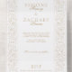 Chic bands of elegant formal ecru scrollwork in a dimensional sculpted style form a border on either side of this classic design. The top flap features a complementary scrollwork ornament with space for your initials. This all-in-one format features a bonus tearaway RSVP card.