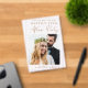 Eleganter Ankündigung Datum freihalten für Ihren bereits verheirateten Hochzeitsempfang mit Ihrem Foto und "Save the Date für unser glückliches Ever After Party" in einer Mischung aus einfacher Goldtypografie und einem schicken Goldskript. Fügen Sie unter Ihrem Foto Ihre Vornamen und das Datum des Empfangs ein.