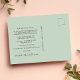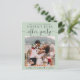 Elegante Weise grün Save the Date Postkarte für einen Empfang oder Party, um Ihre Entdeckung oder kleine Hochzeit zu feiern, die Ihr Foto für den Hochzeitstag, "Save the Date für unser glückliches Ever After Party" in einfachen Typografie und ein chic Drehbuch mit Swashes, Ihren Vornamen und Empfang Datum. Auf der anderen Seite, personalisieren Sie Ihre Ankündigung detaillierter und fügen Sie Ihre Namen in einem signaturähnlichen Skript.