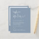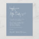 Eine preisgünstige, staubblaue Hochzeitsempfehlung mit der Einladung "Happily Ever After Party" in einem schicken, weißen Drehbuch, der Einladung in klassisch weißer Serifentypografie und Ihren Namen in einem signaturähnlichen Script. Auf der Rückseite laden Sie Ihr Foto hoch und geben Sie Ihre Website-Adresse, um einen QR-Code zu erstellen, den Ihre Gäste online scannen können und weitere Details erhalten können.