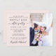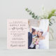 Stilvolles hellrosa Dekor oder private Hochzeitsankündigung und Empfang-Einladung mit Ihrem Foto und "Happily Ever After Party" in moderner Typografie und einem schicken Drehbuch mit Swashes. Fügen Sie Ihre Party- oder Empfang-Daten und Ihre Namen in ein signaturartiges Skript ein. Auf der Rückseite geben Sie Ihre Website-Adresse Hochzeit, um einen QR-Code für Gäste zu erstellen, um alle Details zu scannen und online uAwg.