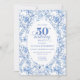Chic French Toile de Jouy Blue Roses 50th Birthday Einladung