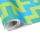 Eine stilvolle Rolle des luxuriösen Wrapping Paper mit einem Zickzack-Muster in Türkis, Neon Grün und Smaragdgrün. Teil der Posh & Painterly 'Blue Moons' Kollektion; von Judy Adamson aus einer handbemalten Papierkollektion.