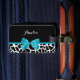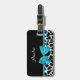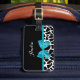 Ein schicker, schwarz-weißer Giraffe-Gepäckanhänger mit einem trendigen, aqua-blauen Band, das in einen gurt Bug gebunden ist. Personalisieren Sie das süße Tier-Druckdesign durch Hinzufügen Ihres Namens. Flachdruckbild, nicht eigentlicher Bogen.