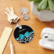 Ein schicke, schwarz-weiße Giraffenprint Schlüsselanhänger mit einem trendigen aquablauen Band, das in einen gürteligen Bogen gebunden ist. Personalisieren Sie dieses süße Tier-Druckdesign, indem Sie Ihren Namen hinzufügen. Flachbild, nicht eigentlicher Bogen.